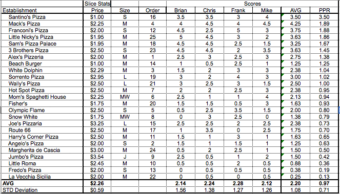 Every year, our group of four (or five!) spends one entire evening tasting and rating a slice of pizza from every ”legitimate” pizza place on the Wildwood, NJ boardwalk. Here, we reveal our findings… For more info, read the ‘About the Pizza Tour‘ page!