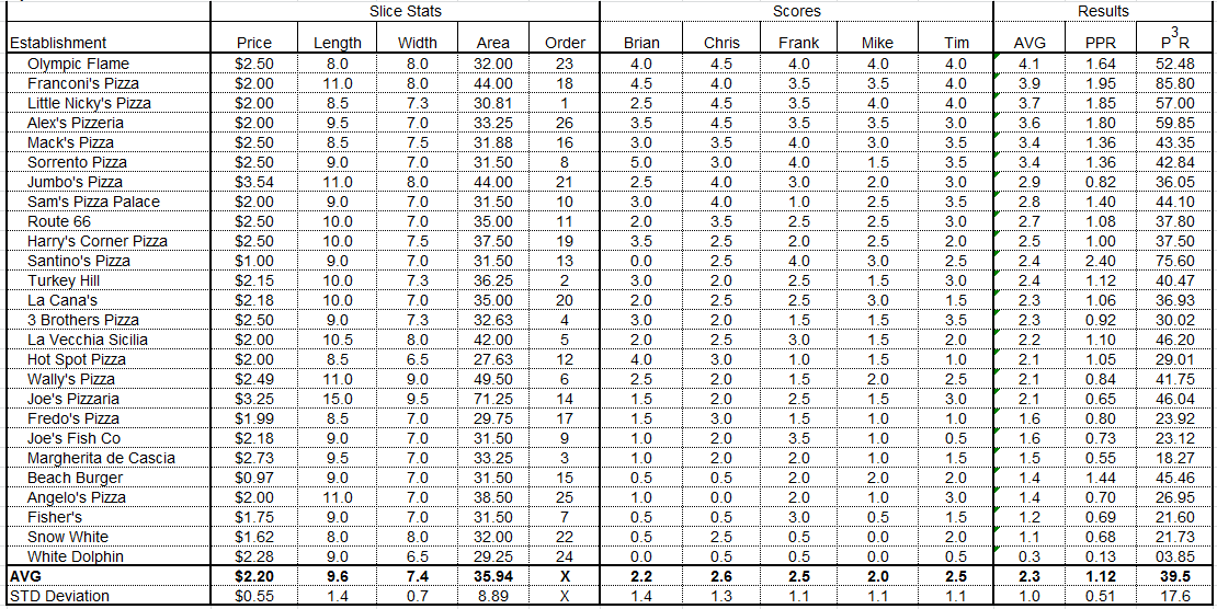 Pizza Tour 2012 Results